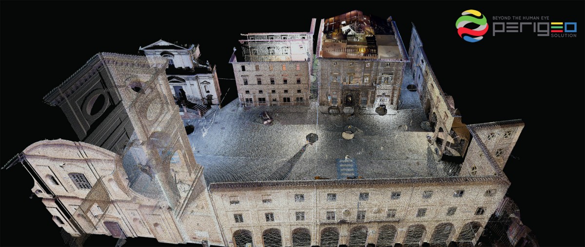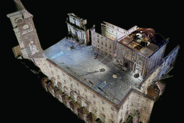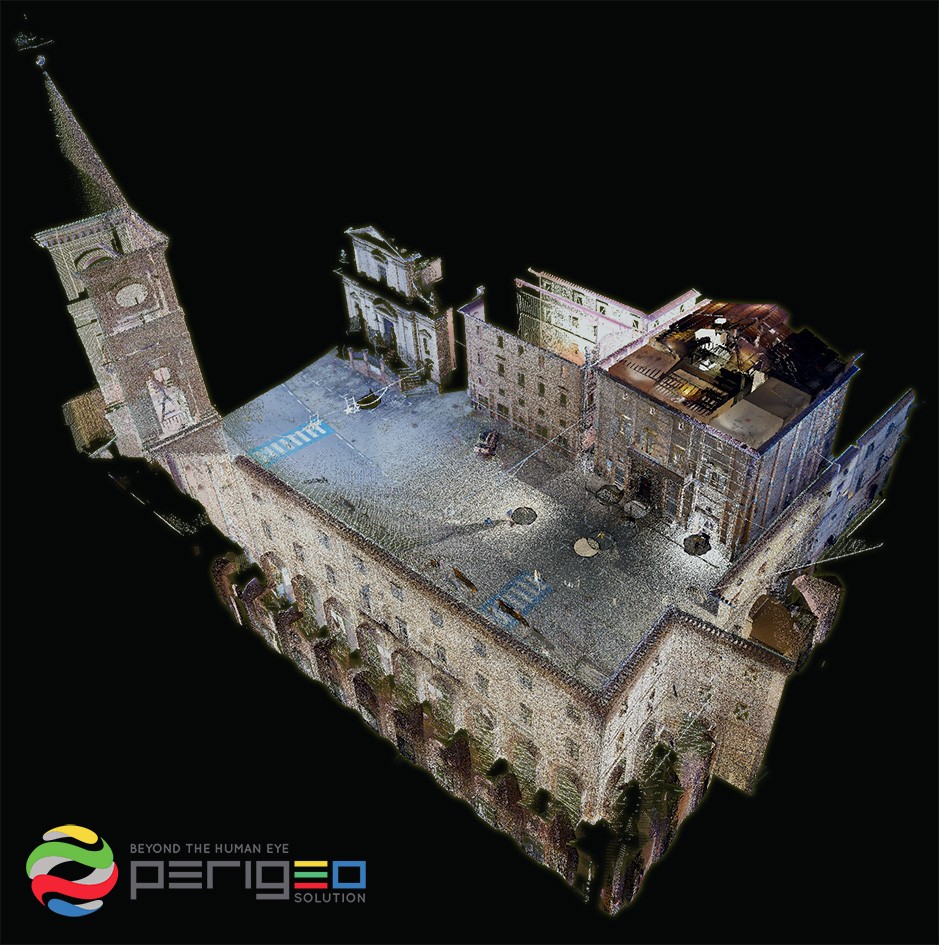 Rilievo Laser Scanner con inquadramento topografico a poligonale di fabbricato storico per civile abitazione e commerciale sito nella piazza principale di Caldarola. In particolare ci è stato commissionato anche il rilievo dei prospetti prospicienti al fine di eseguire una ricostruzione storico artistica rispettosa dei canoni architettonici dell’epoca. Nel dettaglio, dopo aver effettuato il rilievo e ricostruito il modello tridimensionale a nuvola di punti si è proceduto alla restituzione grafica di piante, prospetti e sezioni del Palazzo e del contesto limitrofo oltre alla redazione delle tavole del quadro fessurativo derivante dal sisma 2016 e ad una copiosa documentazione fotografica generale e di dettaglio.